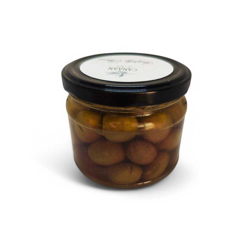 Green Olives Jar Slightly tangy and bitter unripe olives preserved in salt water without any preservatives